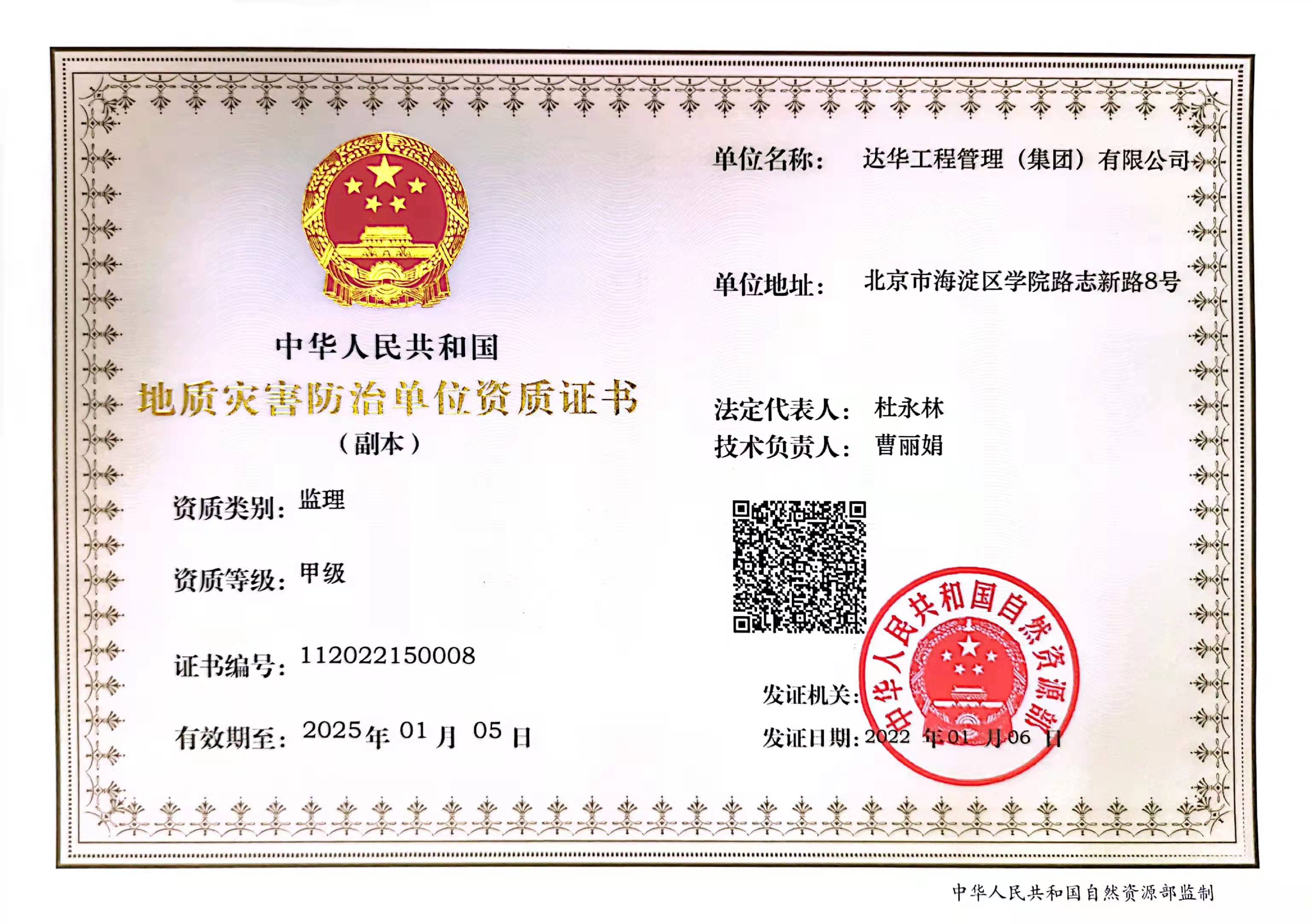 - 達華集團榮獲中國自然資源部頒發(fā)的地質災害… 2022/01/21